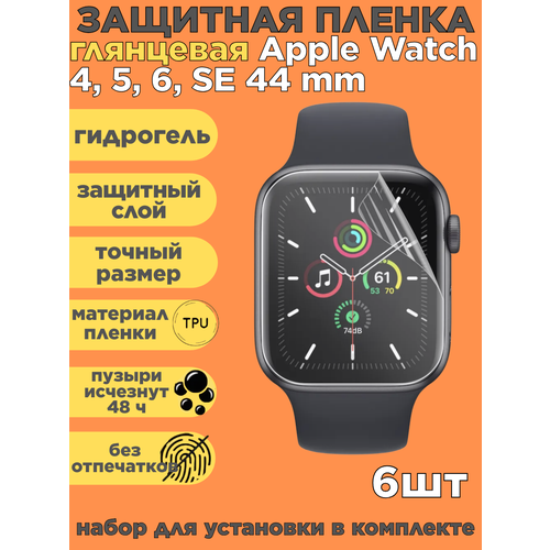 Комплект 6 шт. Защитная пленка на Apple Watch 4, 5, 6, SE 44 mm, глянцевая