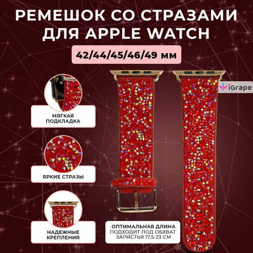 Ремешок со стразами для Apple Watch 42/44/45/46/49 мм, iGrape (Красный)