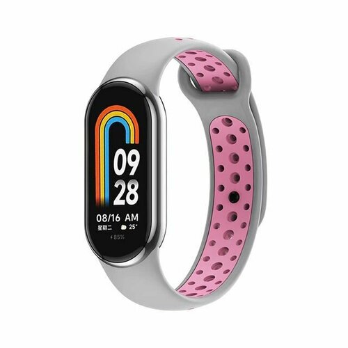 Ремешок силиконовый с перфорацией для Xiaomi Mi Band 8 (серый/розовый)