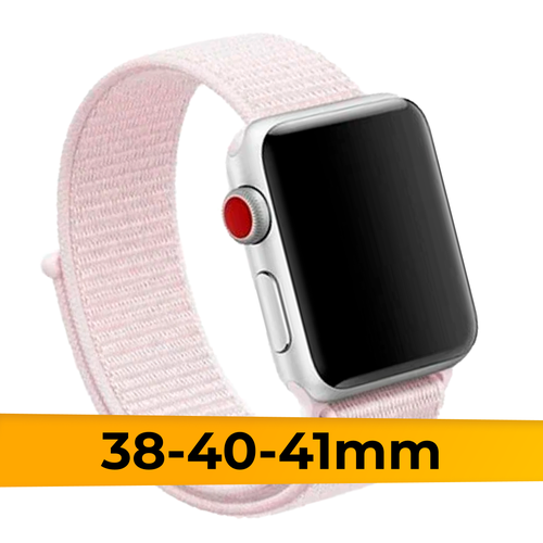 Нейлоновый ремешок для смарт часов Apple Watch 38-40-41mm / Эластичный браслет для Эпл Вотч 1-9 и SE / Сменный тканевый ремешок / Светло-розовый