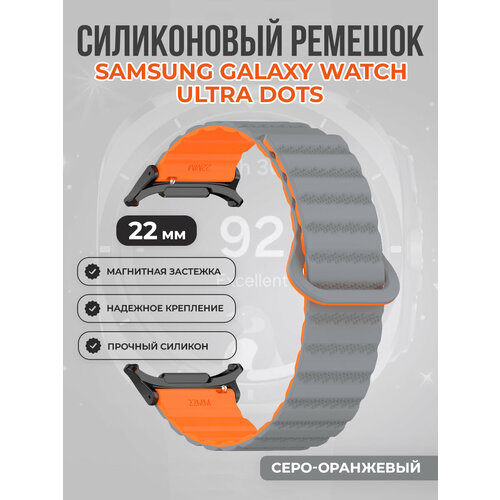 Силиконовый ремешок для Samsung Galaxy Watch Ultra, магнитный, серо-оранжевый