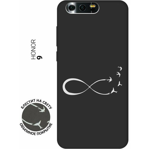 Матовый Soft Touch силиконовый чехол на Honor 9, Хонор 9 с 3D принтом "Infinity W" черный