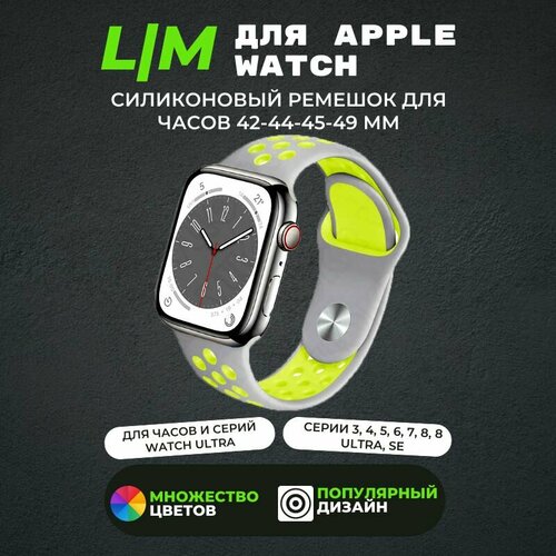 Силиконовый ремешок для smart часов Apple Watch и аналогов 42/ 44/ 45/ 49 мм / силиконовый браслет на эпл вотч series 1-9, размер M/L