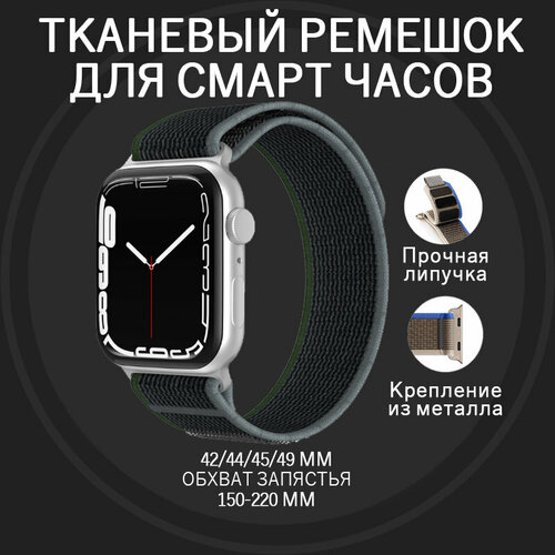 Ремешок для Apple Watch ULTRA 49mm, Series 1-8, SE, 42/44/45/49mm, тканевый темно-серый темно-зеленый