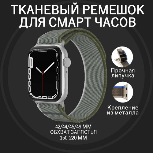 Ремешок для Apple Watch ULTRA 49mm, Series 1-8, SE, 42/44/45/49mm, тканевый светло-серый темно-зеленый белый