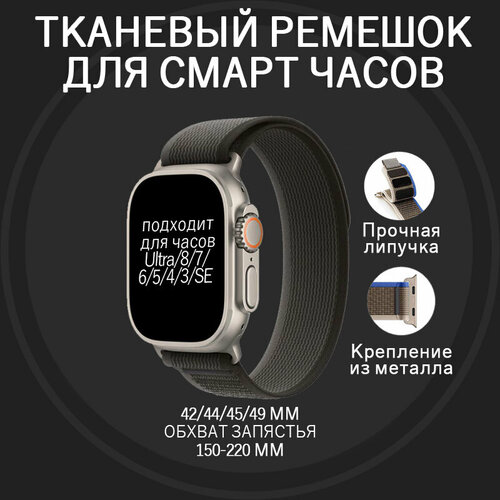 Ремешок для Apple Watch ULTRA 49mm, Series 1-8, SE, 42/44/45/49mm, тканевый темно-серый