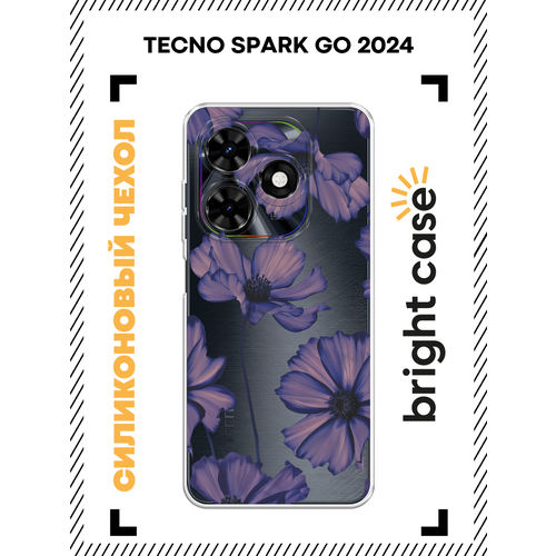 Чехол на Tecno Spark Go 2024/Spark 20C / Текно Спарк Го 2024/Спарк 20C с принтом Фиолетовые космеи, прозрачный