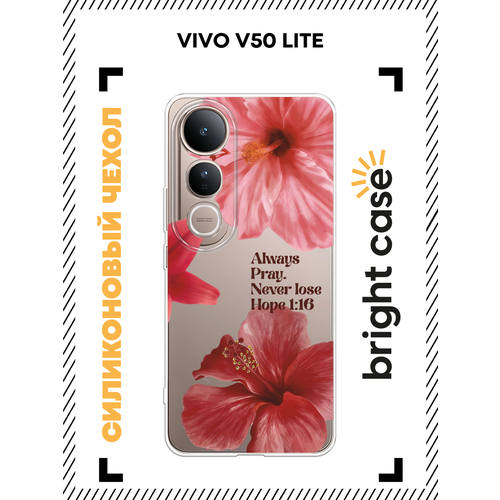 Чехол на Vivo V50 lite / Виво В50 Лайт с принтом Красные цветы, прозрачный