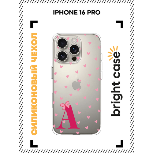 Чехол на Apple iPhone 16 Pro / Айфон 16 Про с принтом Буква A сердечки, прозрачный