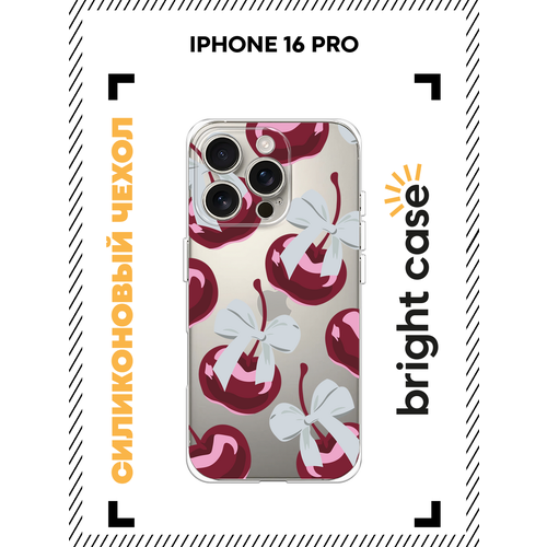 Чехол на Apple iPhone 16 Pro / Айфон 16 Про с принтом Вишенки с бантиками, прозрачный