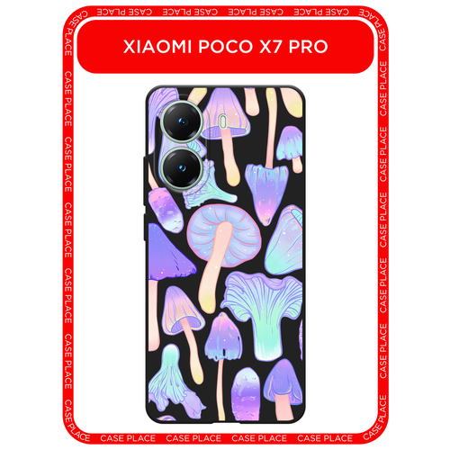 Черный матовый чехол на Poco X7 Pro / Поко X7 Про с принтом Пастельные грибы