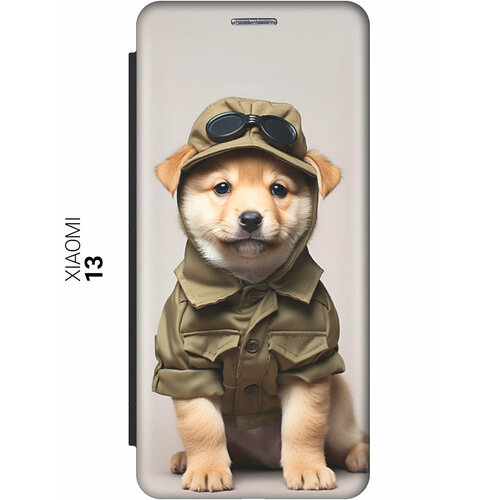 Чехол-книжка на Xiaomi 13 / Сяоми 13 с рисунком "Бело-красные пионы" черный