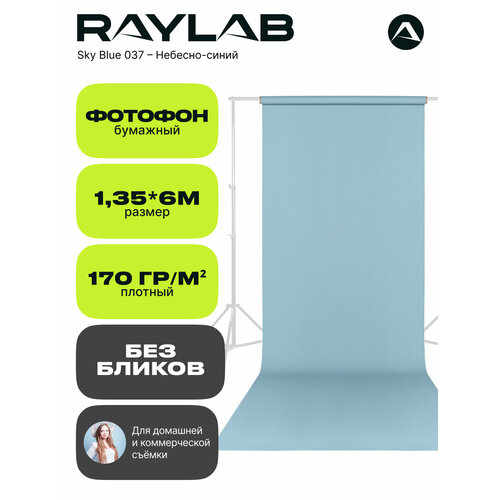 Фон бумажный Raylab 037 Sky Blue небесно-синий 1.35x6м