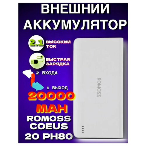 Внешний аккумулятор Romoss 30000 мА/ч для мобильных устройств, белый (PHP30-852) 600011622096