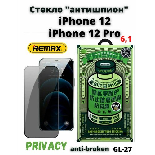 Защитное Глянцевое стекло Remax антишпион для Apple iPhone 12 / 12 Pro 6.1" / бронь противоударная от сколов, царапин на экран айфона 12/12 про