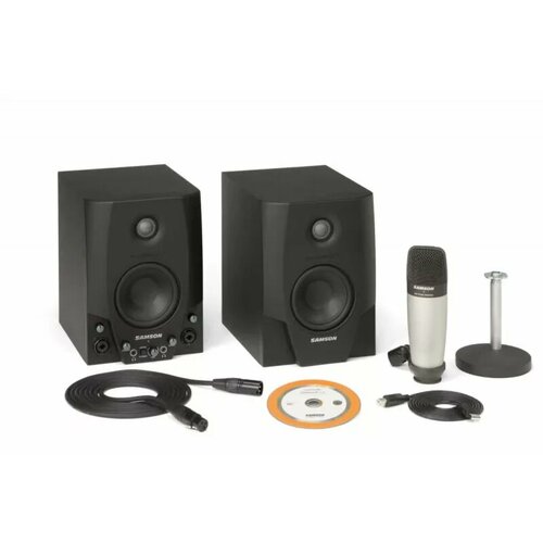 STUDIO GT4 PRO активные мониторы с входом USB. 4" НЧ, 1" ВЧ, 2х20 Вт; входы: 2 микр./инстр.(XLR&1/4"), 2AUX(2xRCA,1/8"); регуляторы LEVEL, MIX, GAIN; в комплекте микрофон C01, подставка, бренд Samson