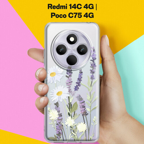 Силиконовый чехол на Xiaomi Redmi 14C 4G / Poco C75 4G с принтом "Цветы" с прозрачными бортиками