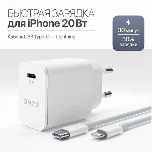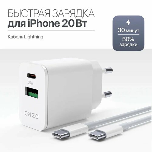 Зарядное сетевое устройство для телефона iPhone и Android ONZO блок питания type C с поддержкой быстрой зарядки, 20Вт, белый (о)