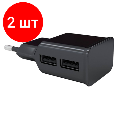 Комплект 2 шт, Зарядное устройство сетевое (220 В) RED LINE NT-2A, 2 порта USB, выходной ток 2.1 А, черное, УТ000009404