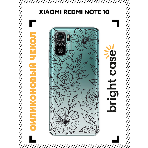 Чехол на Xiaomi Redmi Note 10/Note 10S/Poco M5s / Сяоми Редми Нот 10/Нот 10S/Поко M5s с принтом Контуры цветов, прозрачный