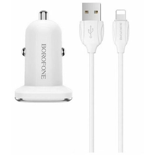 Автомобильное зарядное устройство BZ12, 2xUSB, 2.4 А, кабель Lightning, белое