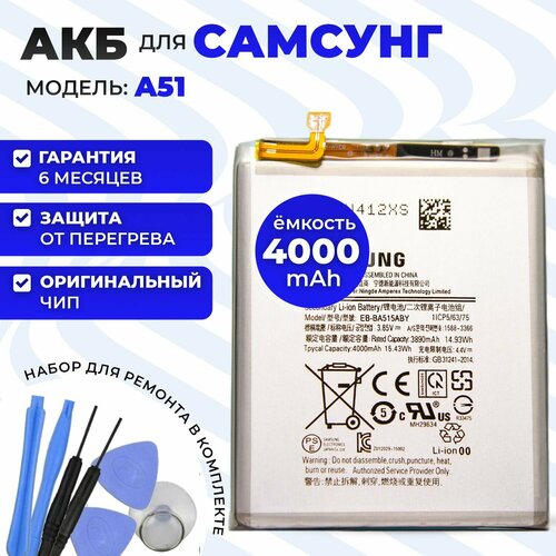 Аккумуляторная батарея (АКБ) (EB-BA515ABY) для Samsung Galaxy A51 (SM-A515F) 4000mAh / Аккумулятор на Самсунг А51 + набор инструментов для установки