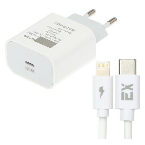 Сетевое зарядное устройство Exployd EX-Z-1378, USB-C, 3 А, PD, 20 Вт, Lightning, белое