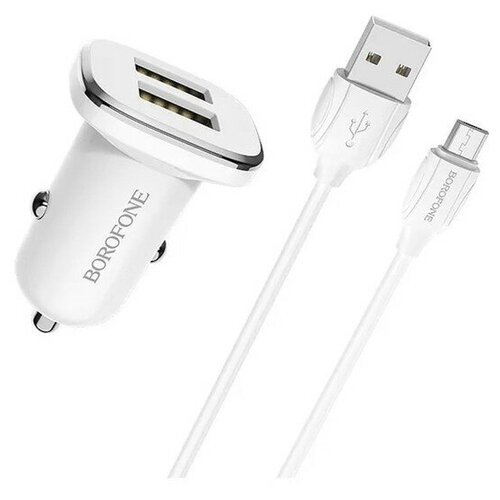 Автомобильное зарядное устройство Borofone BZ12, 2xUSB, 2.4 А, кабель microUSB, белое
