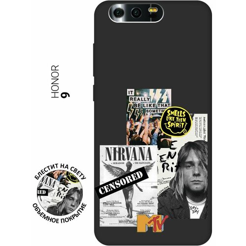 Матовый Soft Touch силиконовый чехол на Honor 9, Хонор 9 с 3D принтом "Nirvana" черный