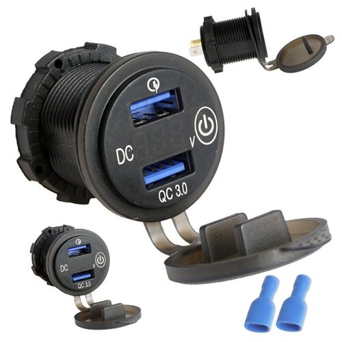 Разъем встраиваемый в авто (врезной) 12V-24V GH-WG8 + Вольтметр (Круглый) QC3.0
