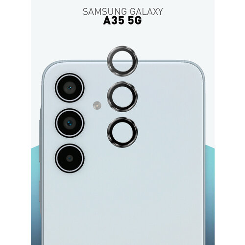 Защитные стёкла на камеры для Samsung Galaxy А35 (Самсунг Галакси А35), чёрная рамка, бренд Rosco, 1 комплект