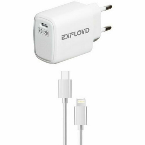 Сетевое зарядное устройство Exployd EX-Z-1168, USB-C, 3А, кабель Lightning, PD, белое