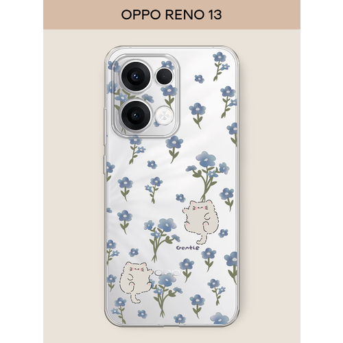 Чехол на Oppo Reno 13 / Оппо Рено 13 с принтом Gentle cats, прозрачный