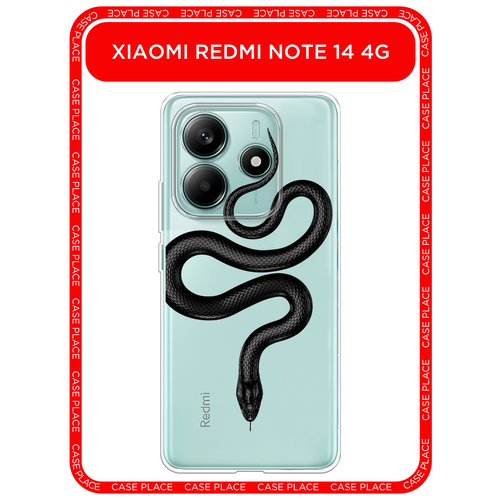 Чехол на Xiaomi Redmi Note 14 4G / Редми Нот 14 4G с принтом Изгиб змеи black, прозрачный