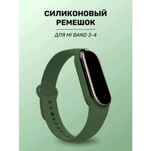Силиконовый ремешок для фитнес трекера Xiaomi Mi Band 3 и Mi Band 4 / Сменный браслет для умных смарт часов Сяоми Ми Бэнд 3 и Ми Бэнд 4 / Темно-зеленый