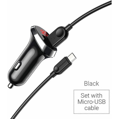 Автомобильное зарядное устройство BOROFONE BZ15 Auspicious, 2*USB + Кабель USB-Micro, 2.4A