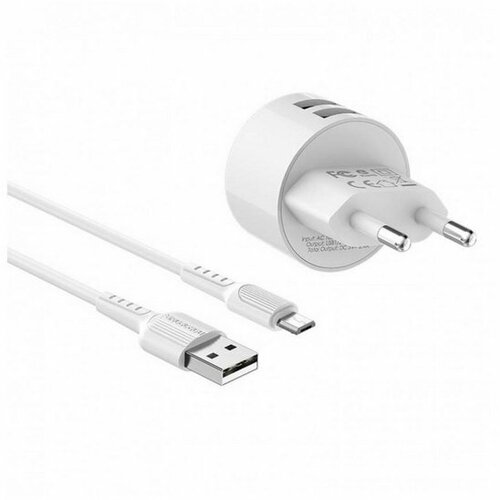 Сетевое зарядное устройство BA23A, 2xUSB, 2.4 А, кабель microUSB, 1 м, белое