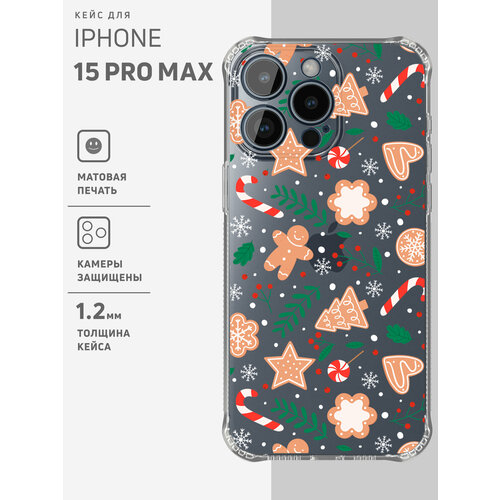 Противоударный чехол для iPhone 15 Pro Max / Бампер на Айфон 15 Про Макс с блестками принтом "Gingerbread pattern"