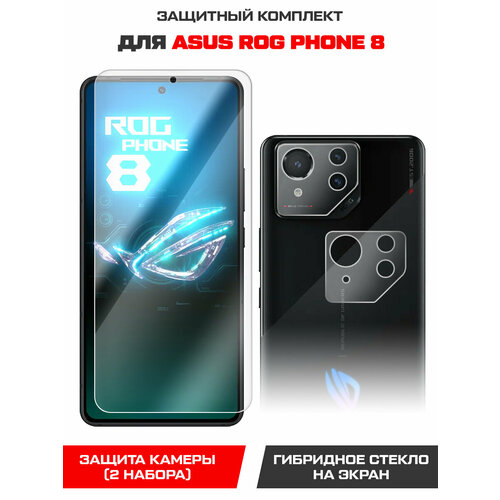 Стекло защитное гибридное Krutoff для Asus ROG Phone 8 + защита камеры (2шт.)