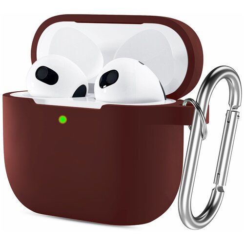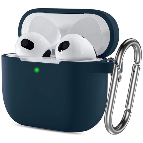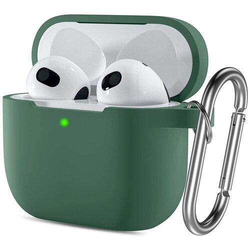 Ультратонкий чехол для Apple AirPods 3/ Силиконовый кейс с карабином для беспроводных наушников Эпл Аирподс 3 из гибкого силикона (Pine Needle Green)