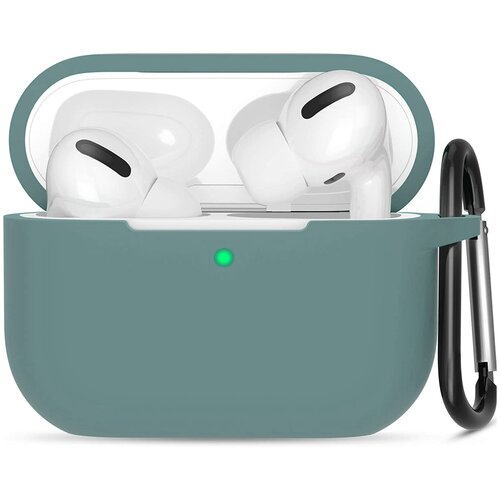 Ультратонкий чехол для Apple AirPods Pro/ Силиконовый кейс с карабином для беспроводных наушников Эпл Аирподс Про из силикона (Dark Night Green)