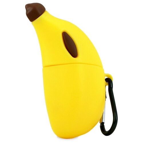 Силиконовый чехол для Apple AirPods 1 и AirPods 2 Toy с карабином / Кейс для Эпл Аирподс 1 и Аирподс 2 с держателем (Банан)