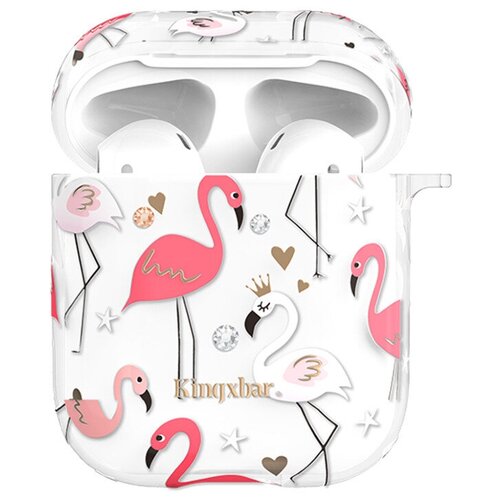 Чехол пластиковый Kingxbar для Airpods 2 (8), прозрачный, фламинго3, со шнурком