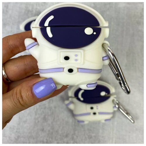 Ультратонкий чехол для Apple AirPods 1/2/ Силиконовый кейс с карабином для беспроводных наушников Эпл Аирподс 1/2 из гибкого силикона/ Астронавт