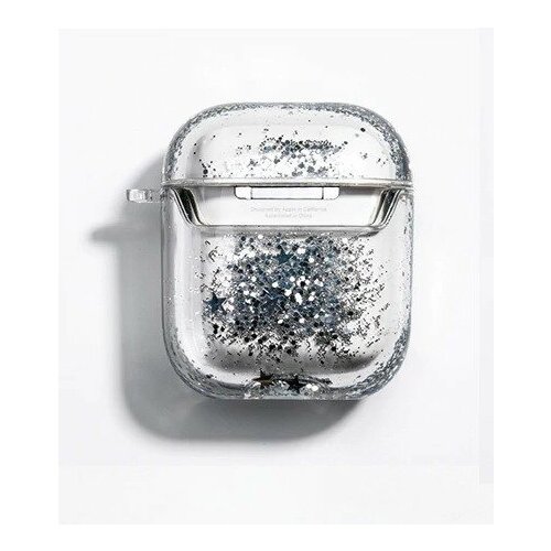 Чехол пластиковый Kingxbar для Airpods 2 (30), прозрачный, серебрянные блестки, со шнурком