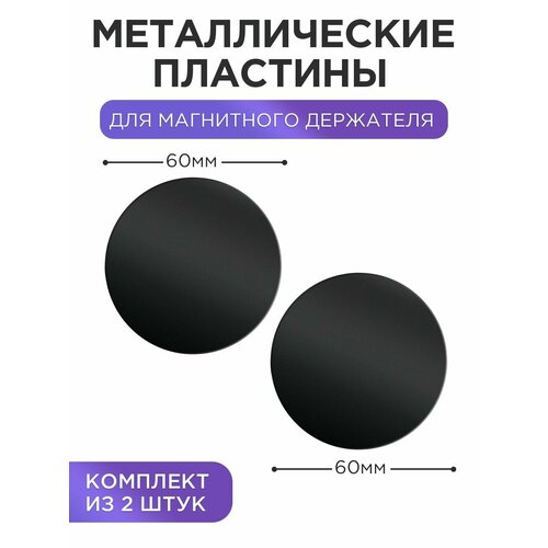 Металлическая пластина крепежная для магнитного держателя телефона и смартфона (2 шт.) Круг 60 мм