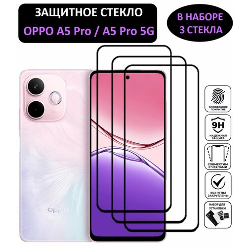 Комплект 3 в 1: Защитное стекло для OPPO A5 Pro ( 3 шт ) Оппо А5 Про Полноэкранное стекло Full Glue