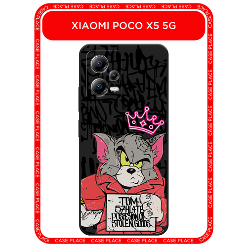 Черный матовый чехол на Xiaomi Poco X5 5G / Сяоми Поко X5 5G с принтом Том и граффити