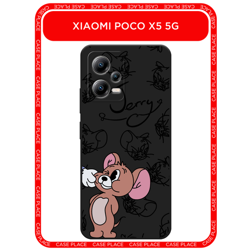 Черный матовый чехол на Xiaomi Poco X5 5G / Сяоми Поко X5 5G с принтом Щекастый Джерри