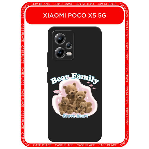 Черный матовый чехол на Xiaomi Poco X5 5G / Сяоми Поко X5 5G с принтом Bear family